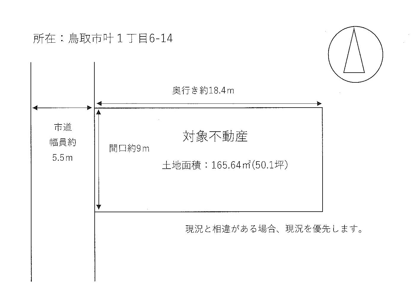 整形地で50坪、間口は9mで幅員は5.5mなので、新築用地としても最適です。